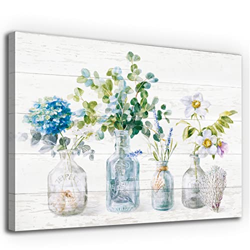 tigeridge - تايجريدج لوحة فنية جدارية لغرفة المعيشة، لوحات قماشية على شكل زهرة الكوبية باللونين الازرق والابيض، صور زهور مؤطرة للحمام وغرفة النوم وديكور المطبخ 12 انش × 16 انش، متعدد الألوان