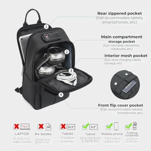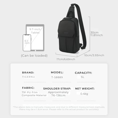 TIGERNU - تايجرنو شنطة كروس صغيرة للتابلت مقاس 9.7، شنطة صدر كاجوال للرجال، لون اسود، مقاس L