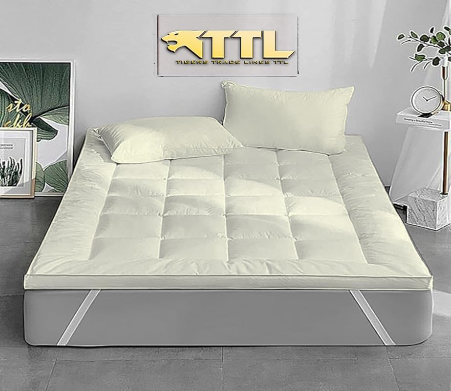 Tigers Trade Lines - مرتبة تطرية من قطن مصري فاخر تايجرز براند حشو فايبر فائق النعومة للمنزل والفنادق والقرى السياحية | 1.6×2 متر مقاس سرير ماستر اوف وايت تريد لاين