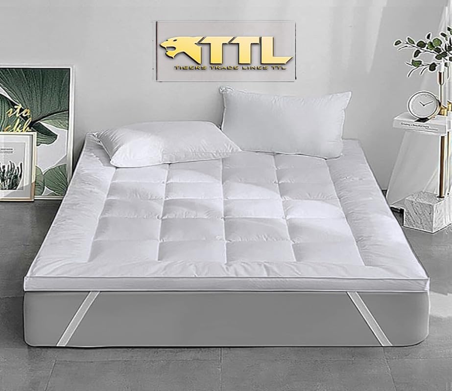Tigers Trade Lines - طقم أغطية مرتبة، حشوة من ألياف فائقة النعومة، غطاء قطن مصري، مثالي للمنزل والفنادق وبيوت الراحة من تايجرز، 3 قطع، مع كيسين مخدة، 1.6×2 متر (سرير ماستر، أبيض)، من تايجرز تريد لاين