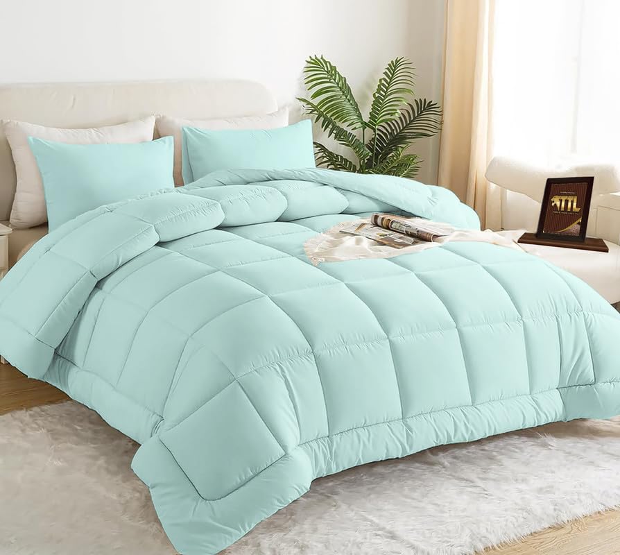 Tigers Trade Lines - طقم لحاف شتوي مريح من تايجرز تريد لاين حشو فايبر فائق النعومة القطن المصري الفاخر | للسرير الرئيسي مقاس 2.30 × 2.40 متر | لون أخضر تفاحي