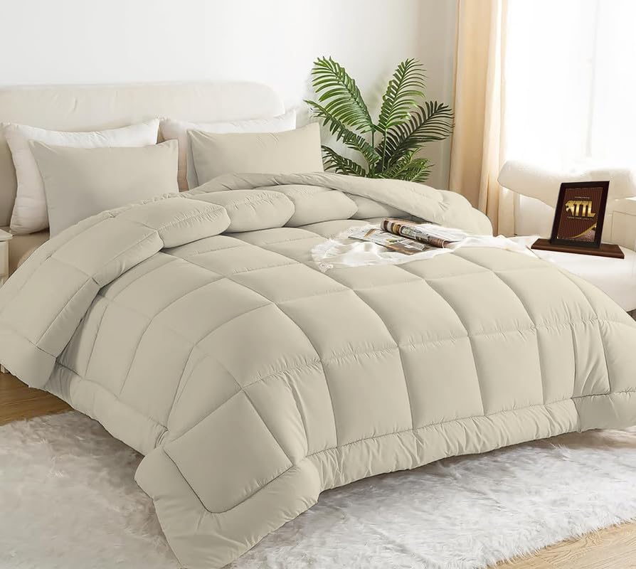 Tigers Trade Lines - طقم لحاف شتوي مريح من تايجرز تريد لاين القطن المصري الفاخر بحشو فايبر فائق النعومة لسرير فردي مقاس 1.8× 2.4 متر | لون بيج