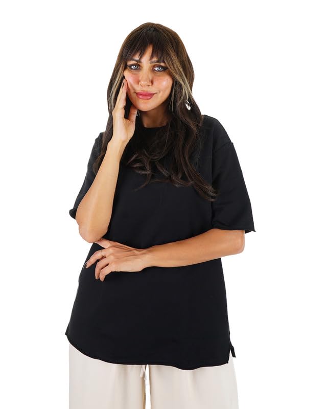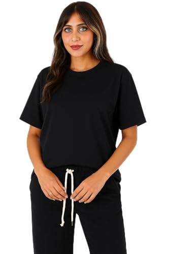 TIGHT STITCH - طقم قطن ميلتون عصري بخياطة ضيقة مكون من تي شيرت قطني كاجوال باتجاهين وسروال مطابق، مثالي للملابس اليومية والنمط الخارجي للنساء