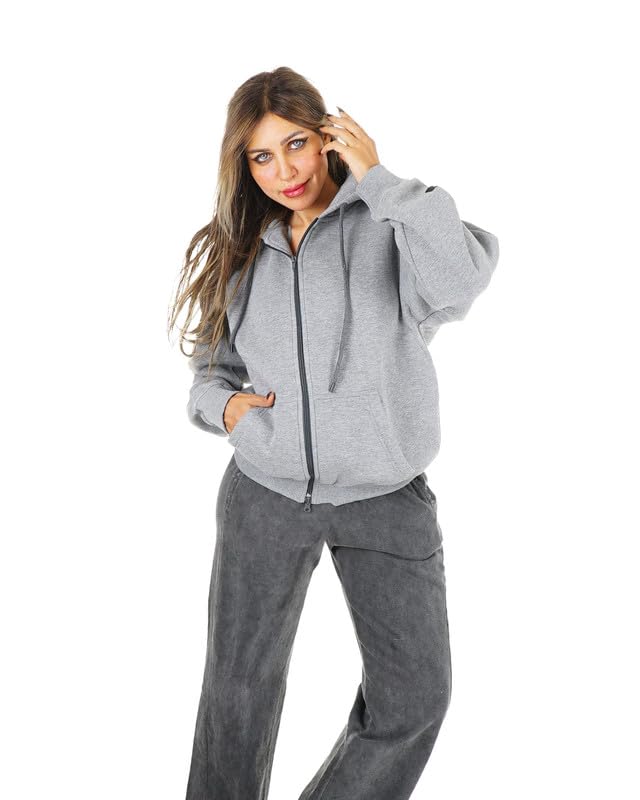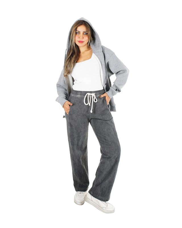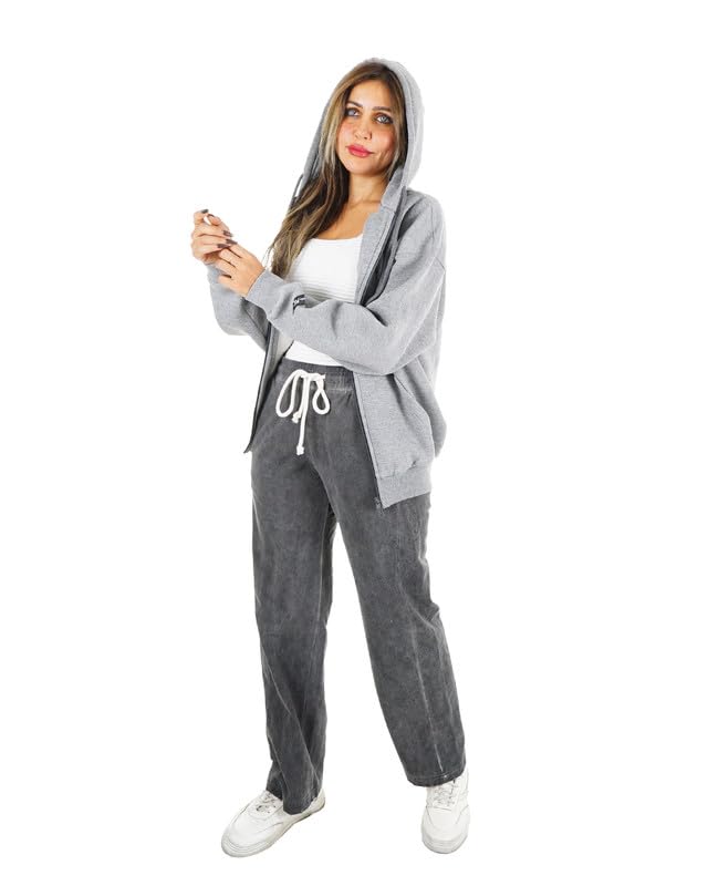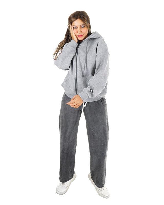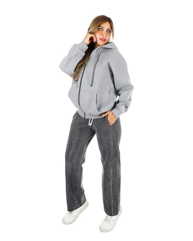 TIGHT STITCH - طقم قطن ميلتون عصري بخياطة ضيقة مكون من قطعتين جاكيت بغطاء للرأس وسحاب ثنائي الاتجاه وسروال مطابق، مثالي للملابس اليومية والنمط الخارجي للنساء