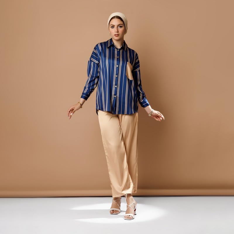 TIGHT STITCH - طقم بيجامة ساتان ناعمة للنساء من تايت ستيتش (113)