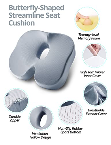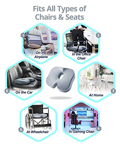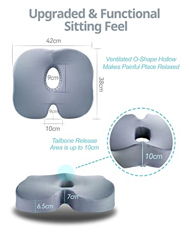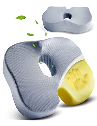 TIGUTEC - وسادة لتقويم عظام العصعص وتخفيف آلام الظهر والبواسير للسيارة والكرسي المتحرك وكرسي المكتب من تيجوتيك (رمادي)، رغوة الذاكرة
