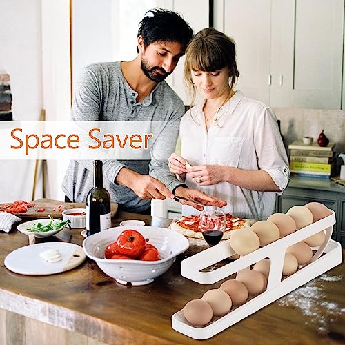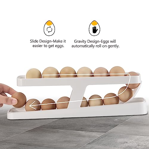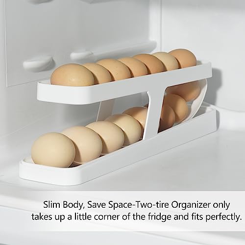 Generic - موزع بيض للثلاجة قابل للدوران تلقائيًا لتخزين البيض بطبقتين حامل حاوية بلاستيكية منظم للمطبخ موفر للمساحة للتخزين في الثلاجة من تيكليان
