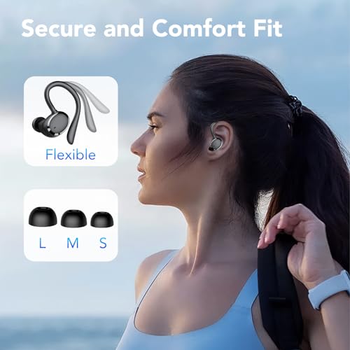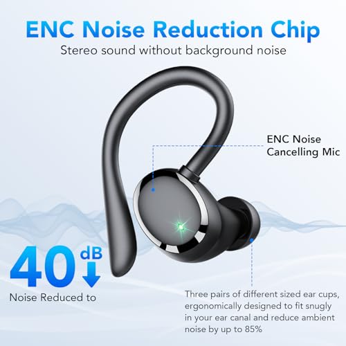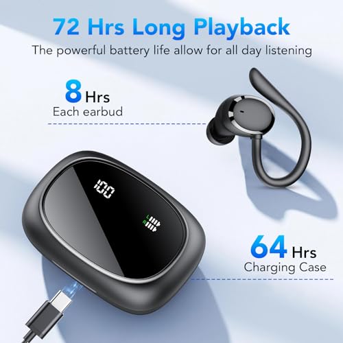 Tiksounds - سماعات بلوتوث رياضية لاسلكية بلوتوث 5.3 مع ميكروفون اي ان سي، سماعات بلوتوث 72 ساعة بتصميم داخل الأذن، سماعات أذن باس عميقة، مقاومة للماء بمعيار IP7 وبشاشة ال اي دي ومنفذ USB-سي تحكم باللمس