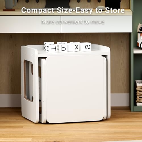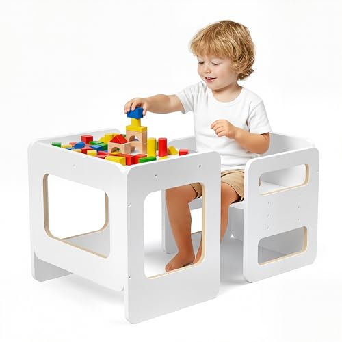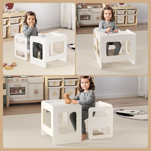 Tilhumt - طقم طاولة وكرسي للاطفال كرسي مونتيسوري بارتفاع قابل للتعديل وطاولة انشطة مع سياج للقراءة واللعب والفنون والحرف اليدوية اثاث المبتدئين في المشي من تيلهومت أبيض