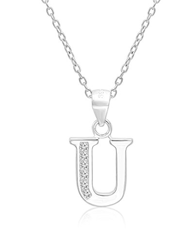 TILO JEWELRY - سلسلة انيقة وعصرية بدلاية حرف من الفضة الاسترلينية 925 والزركونيا المكعب الشفاف تيلو جوليري زركونيا مكعب للنساء