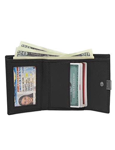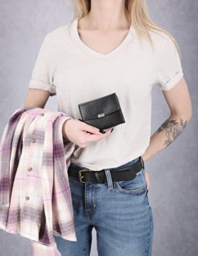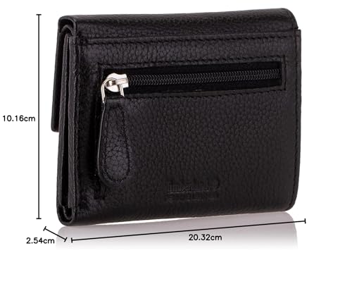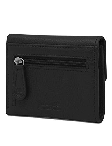 Timberland - محفظة من تيمبرلاند مصنوعة من الجلد للنساء، بتصميم صغير مع مشبك إغلاق، لون أسود، مزودة بحماية RFID وفتحات متعددة
