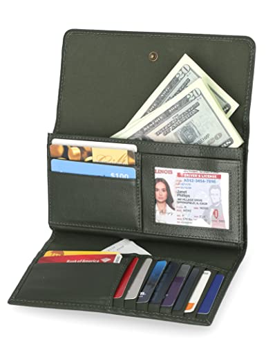 Timberland - محفظة من تيمبرلاند مصنوعة من الجلد للنساء، بتصميم كلتش منظم باللون جريب ليف، مع حماية RFID وفتحات متعددة