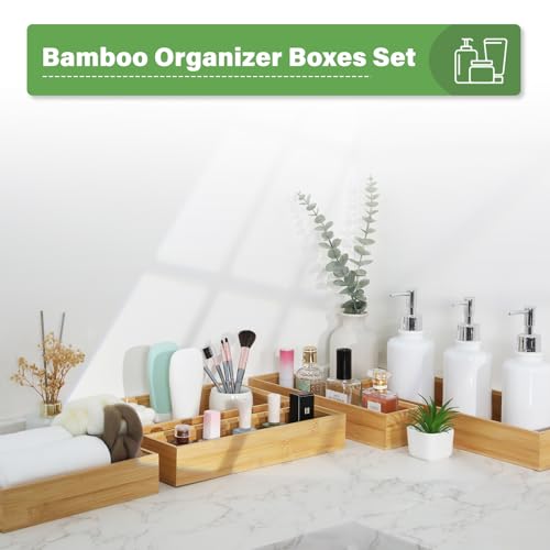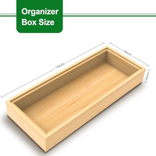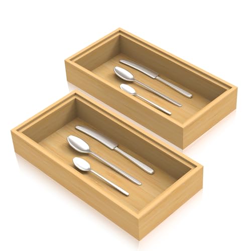 Timboops Home - منظم ادوات مائدة من الخيزران المنزلي من تيمبوبس، منظم درج ادوات المطبخ الفضية، حامل صينية ادوات المائدة (15 انش × 6 انش × 2 انش)