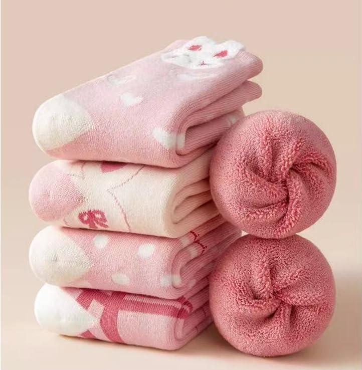 Timelux - 4 ازواج جوارب شتوية حرارية للاطفال الصغار والشباب، جوارب صوف دافئة سميكة للاولاد والبنات، غير قابلة للانزلاق ومريحة للمشي لمسافات طويلة، قطن ناعم جيد التهوية للطقس البارد