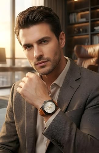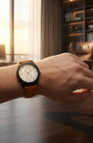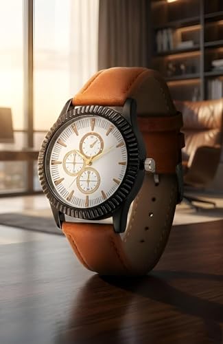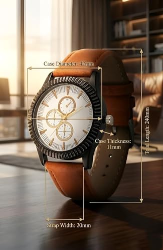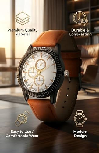 Generic - ساعة - ساعة كلاسيكية بسوار جلدي للرجال مع مينا أسود ولمسات ذهبية وحركة كوارتز وميزات متعددة الألوان للأناقة اليومية