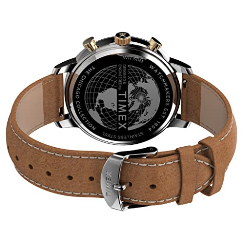 Timex - ساعة للرجال TW2U39000 من تايمكس، تناظري، بمينا أزرق، بسوار اللون البيج
