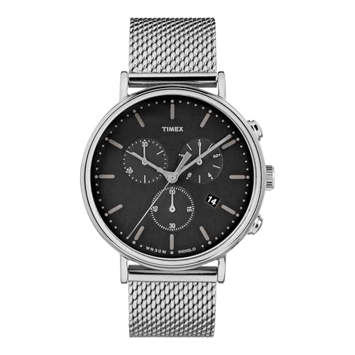 Timex - ساعة يد بسوار من الستانلس ستيل باللون الاسود للجنسين من تايمكس، انالوج