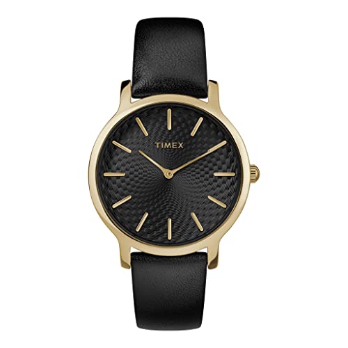 Timex - ساعة انالوج بعقارب وسوار جلد وميناء منقوشة للنساء من تايمكس - اسود