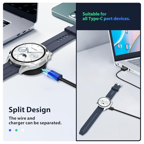 TiMOVO - تيموفو شاحن متوافق مع ساعة هواوي GT4 46 ملم - 41 - GT3 - GT3 SE - GT3 برو - ووتش 4 - - 3 - الجديدة - التيميت سمارت كابل شحن USB مغناطيسي - اسود