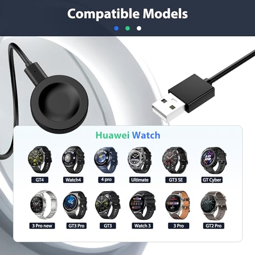 - 【التوافق】- شاحن بديل لساعة هواوي GT4 46 ملم/41 ملم، هواوي ووتش 4/ووتش 4 برو/ووتش 3/ووتش 3 برو الجديدة، هواوي ووتش GT3/GT3 SE/GT3 برو/GT2 برو/GT2 برو ECG، هواوي ووتش جي تي سايبر/رانر، هواوي ووتش التيميت، هواوي ووتش بادز / ووتش دي، ساعة هونر ووتش 4 برو الذكية. (الساعة الذكية غير متضمنة).
