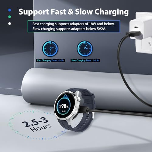 - 【شحن آمن وسريع】- يدعم الشحن السريع، أداء مستقر، رقاقة حماية مدمجة من الحمل الزائد، لن يسخن الشحن، حتى إذا تم شحنه لفترة طويلة، فلن يتلف الساعة، مما يوفر طاقة كافية للساعة بأمان.