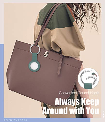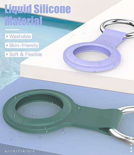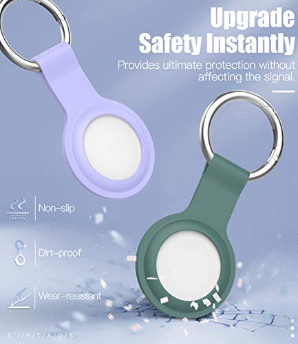 TiMOVO - جراب من السيليكون متوافق مع اير تاج 2021، قطعتان من تيموفو، بتصميم مقاوم للخدش وخفيف الوزن بسلسلة مفاتيح مضادة للفقدان، بلون اخضر داكن وارجواني فاتح