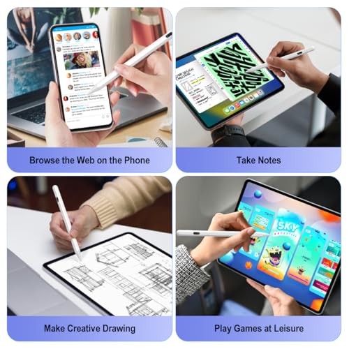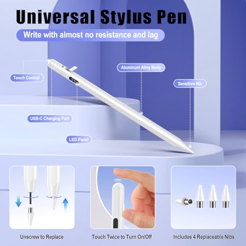 TiMOVO - قلم ستايلس لشاشات اللمس من تيموفو، قلم ستايلس للشحن السريع لابل ايباد/ايفون/اندرويد/iOS/سامسونج/لينوفو/تابلت شاومي، قلم ستايلس للكتابة بشاشة عرض الطاقة، أبيض
