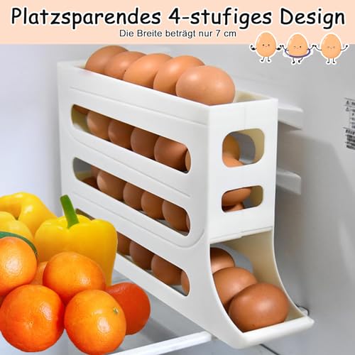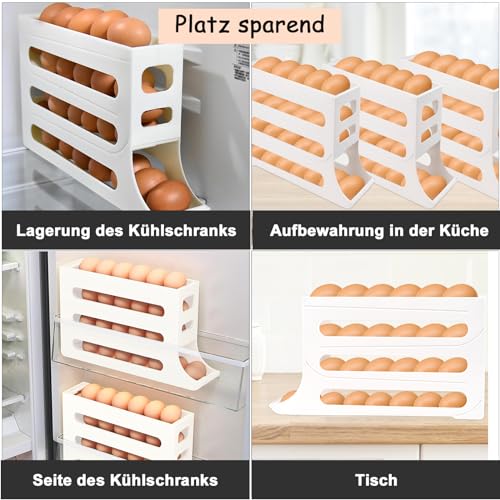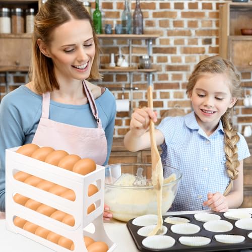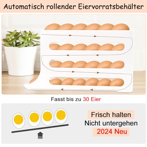 TINGTING - حامل تخزين للبيض للثلاجة من تينج تينج، حامل بيض يتسع لـ 30 بيضة، حامل بيض للثلاجة، منظم تخزين بيض، منظم بتدوير تلقائي من 4 طبقات للبيض للثلاجة والمطبخ