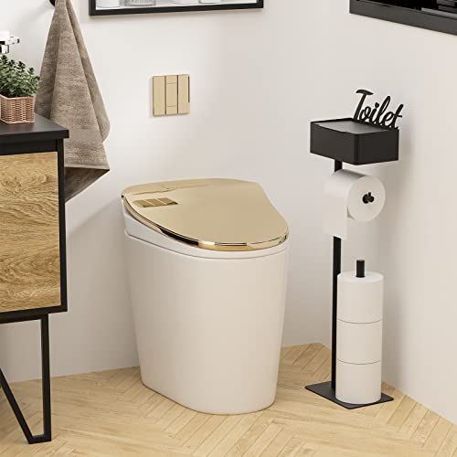 Tinpin - حامل ورق تواليت قائم بذاته مع رف للتخزين وحامل مناديل مبللة للحمام من تين بين، لون أسود مطفي