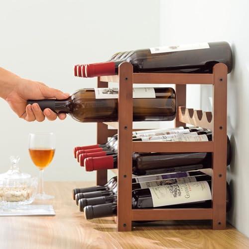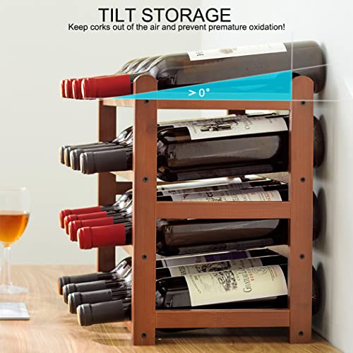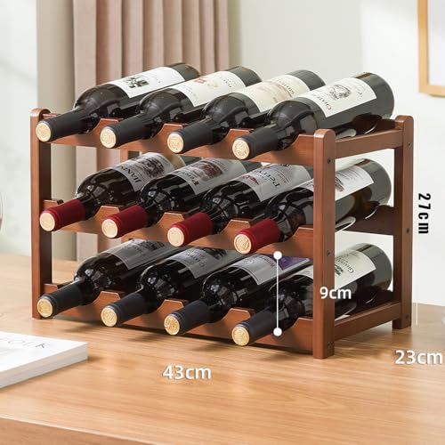 Tinyuet - تاينيويت رف زجاجات، رف مشروبات من الخيزران الطبيعي، رف نبيذ من 3 طبقات، قابل للتكديس، رف زجاجات مستقل لـ 12 زجاجة، رف قفص المشروبات