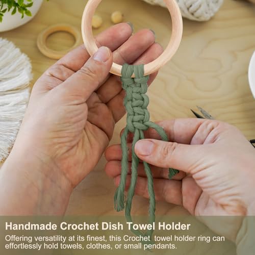 - تصميم كروشيه عملي: الشكل المحاك لا يضيف فقط لمسة أناقة لمنزلك، بل يوفر أيضًا سطحًا محكمًا يمنع انزلاق المناشف من الحلقة، كما أن الحلقة الخشبية تناسب معظم مناشف الأطباق والمناشف الأخرى.