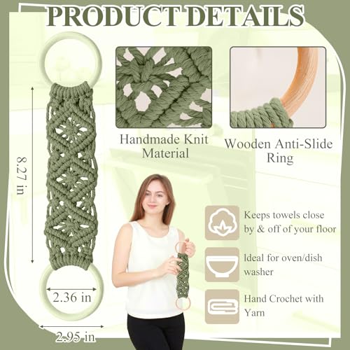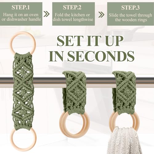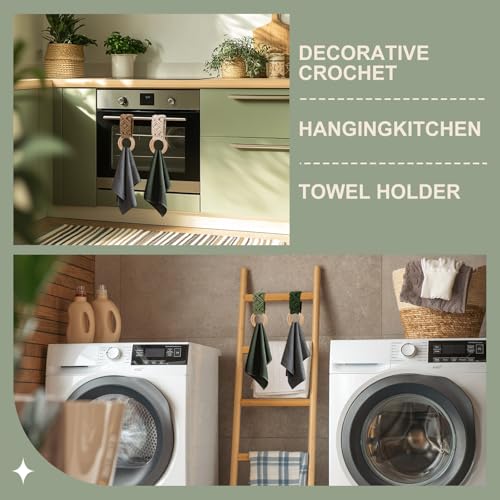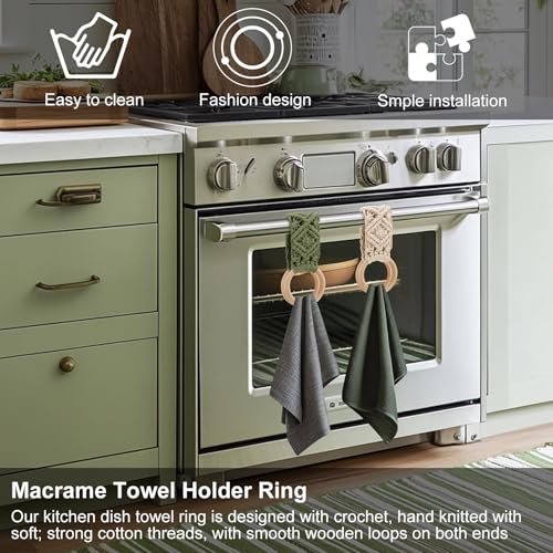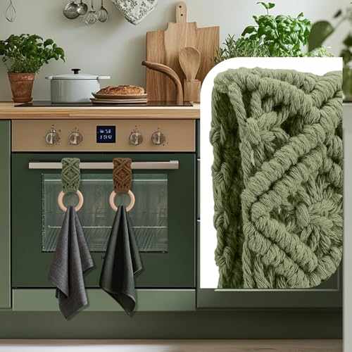 Tioncy - طقم حامل فوط مطبخ من 4 قطع، هدية فالنتاين للأمهات والطهاة، تصميم بوهيمي يدوي بالكروشيه مع حلقات لتعليق الفوط، مناسب للأبواب والخزائن والفرن والموقد، متوفر بأربعة ألوان من تيونسي (أخضر غامق)