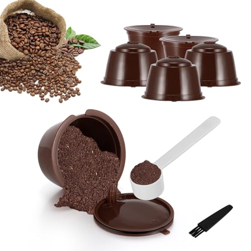 TiooDre - كبسولات قهوة قابلة لإعادة الملء 6 قطع الاستخدام لدولتشي غوستو مع ملعقتين بلاستيكيتين وفرشتي تنظيف عدد القطع: 1 من تيودري