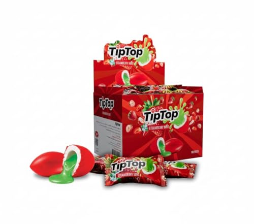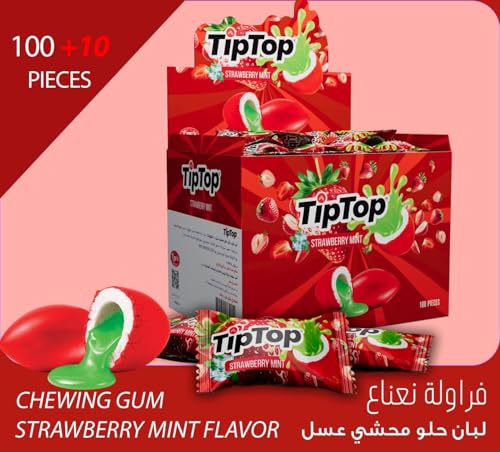 - النكهة المميزة: علكة تيب توب بنكهة الفراولة والنعناع المنعشة، محشوة بعسل حلو يمنحك تجربة مضغ لذيذة ومميزة