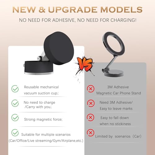 - 【سهل التركيب】صُمم حامل الموبايل المغناطيسي القابل للطي للسيارة ليكون سهل التركيب. يتميز بقاعدة لاصقة يمكن تثبيته بسهولة على أي سطح أملس، مثل نافذة السيارة أو لوحة العدادات والزجاج والبلاط الأملس وسهل التركيب ولا يحتاج إلى أدوات.