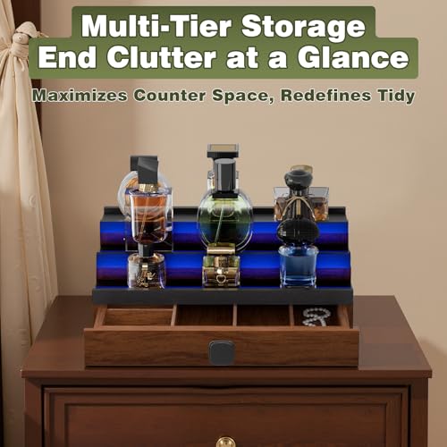 - تخزين متعدد الطبقات: البحث عن فوضى العطور - تصميمنا المتتالي المكون من 3 طبقات يعرض أكثر من 12 زجاجة في لمحة. المزايا: مساحات تخزين مخصصة للساعات/المجوهرات + خزانة مخفية محكمة الغلق مغناطيسيًا للأشياء الثمينة. حوّل الخزائن الفوضوية إلى عروض عطر أنيقة طوال الليل