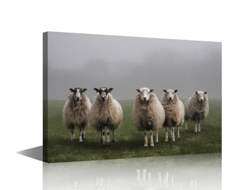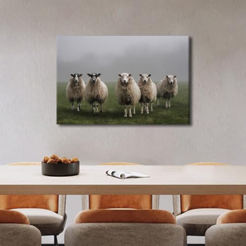 TISHIRON - لوحة فنية جدارية قماشية مطبوعة على شكل خروف في الميدان، لوحة فنية جدارية من قطعة واحدة، ملصقات عصرية كبيرة وصور مطبوعة لغرفة المعيشة وغرفة النوم والمكتب من تيشيرون، مؤطرة جاهزة للتعليق 40 × 60 سم