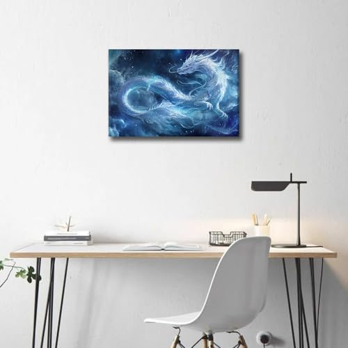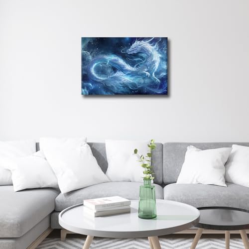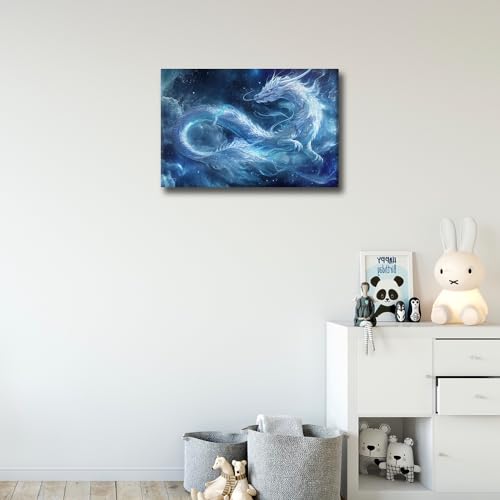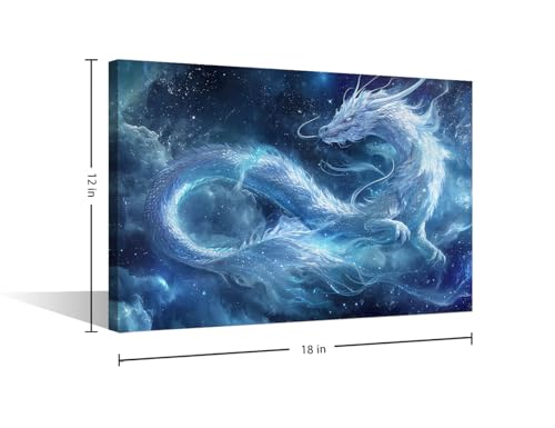 TISHIRON - لوحة فنية جدارية على شكل تنين طائر تنين خيالي لغرفة النوم وغرفة المعيشة ديكور حائط منظر طبيعي مؤطر صور عصرية مطبوعة من القماش لديكور الحائط والحمام والمكتب من تيشيرون 46 × 30.5 سم