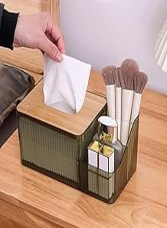 generic - حامل غطاء علبة المناديل، موزع مناديل الوجه مستطيل شفاف عصري من الخيزران للحمام وغرفة النوم وغرفة المعيشة (3 اقسام)