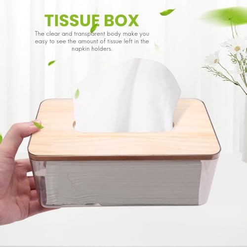 Generic - حامل غطاء علبة المناديل، موزع مناديل مستطيل شفاف حديث من البامبو للحمام وغرفة النوم