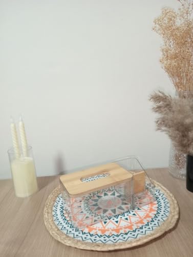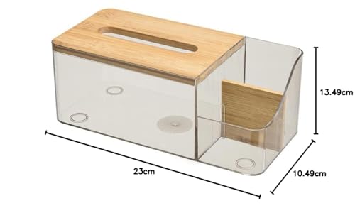 - يسمح لك الهيكل الشفاف برؤية عدد المناشف الورقية المتبقية بسهولة في حامل المناديل، والتي يمكن إعادة تعبئتها بسهولة عن طريق فتح غطاء الخيزران. 23 × 13.5 × 10.5 سم (الطول × العرض × الارتفاع)، يمكنها حمل معظم المناديل ذات الحجم القياسي في السوق وأكوام مناديل الوجه الشخصية. ببساطة قم بإزالة المناديل من الصندوق الورقي وضعها في حامل علبة المناديل.