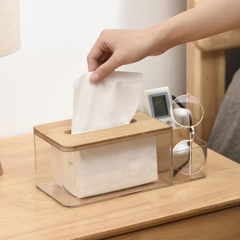 - صندوق المناديل المستطيل الشفاف هذا مصنوع من بلاستيك البولي بروبيلين الشفاف وغطاء الخيزران المتين. التصميم بسيط وعصري، مما يضيف نمطًا زخرفيًا جميلًا إلى حمامك ومنضدة السرير والمكتب والمنزل.