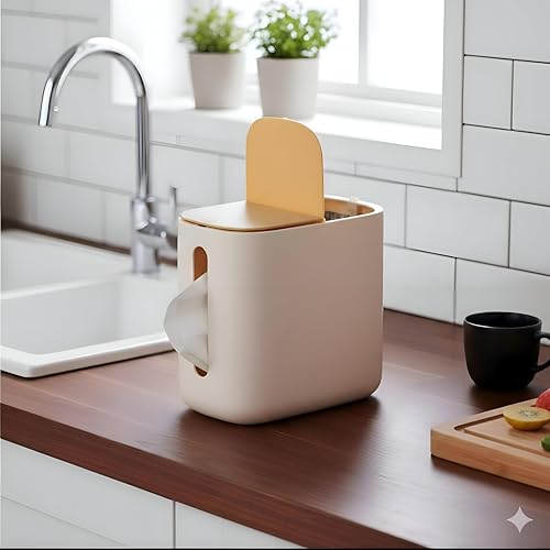 - يجمع هذا الحل المدمج 2 في 1 بين سلة المهملات وحامل المناديل في تصميم واحد أنيق وموفر للمساحة، مثالي للمناطق الصغيرة مثل طاولات السرير أو المكاتب أو مقاعد السيارة، مما يوفر راحة لا مثيل لها دون فوضى.