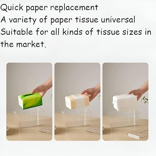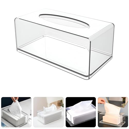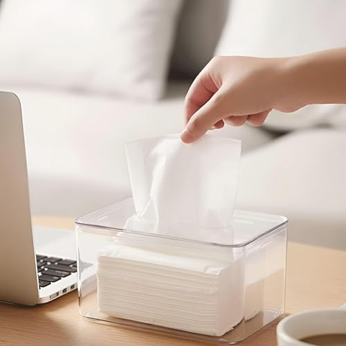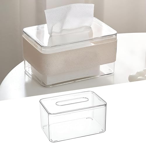 Generic - علبة مناديل بغطاء شفاف أنيق بتصميم مستطيل لتنظيم المناديل في المنزل أو المكتب أو الحمام أو دولاب الملابس، تجمع بين الجمال العصري والبساطة