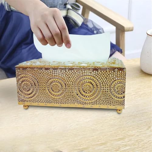 Generic - حامل علبة مناديل كريستال، غطاء علبة مناديل ذهبي مع تصميم موزع مناديل انيق لديكور المنزل، حافظة لسطح الطاولة لغرفة المعيشة وغرفة النوم والمكتب