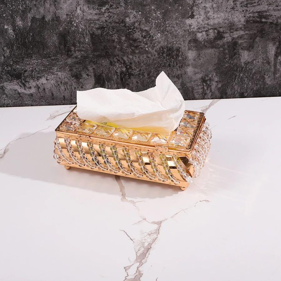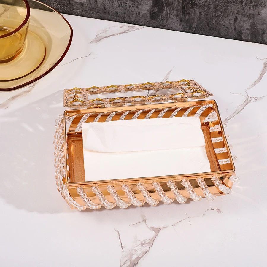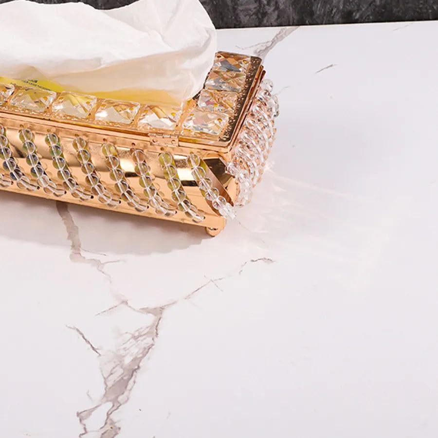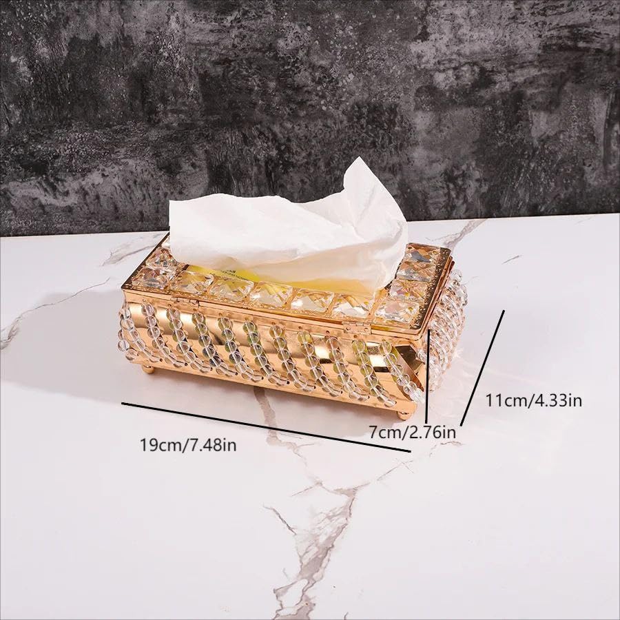 - الحرفية والمتانة: يعرض كل جانب من جوانب حامل المناديل حرفية دقيقة مع حجر الراين اللامع الذي يلتقط الضوء، مما يضمن بقائه خاليًا من الصدأ ويحافظ على جاذبيته بمرور الوقت، مما يجعله إضافة زخرفية ودائمة لمنزلك.