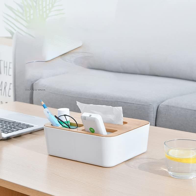 Generic - "علبة مناديل ومنظم ريموت بلاستيك بغطاء خشب بجودة عالية"