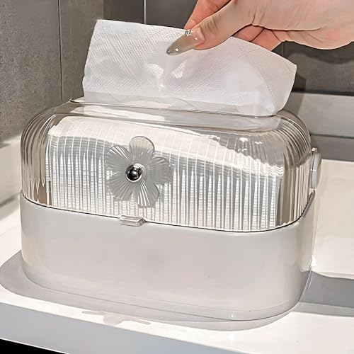 Generic - صندوق تخزين مناديل أنيق قابل لإعادة التعبئة مع زنبرك وغطاء علوي مفصل، حل عملي ومرتب لتوزيع المناديل اليومي