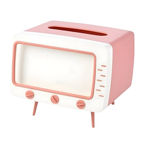 Generic - موزع مناديل - غطاء علبة مناديل كلاسيكي على شكل تلفزيون مع دعم للموبايل، مثالي للجمع بين التخزين، والعملية والتصميم الديكوي الجذاب (لون A)