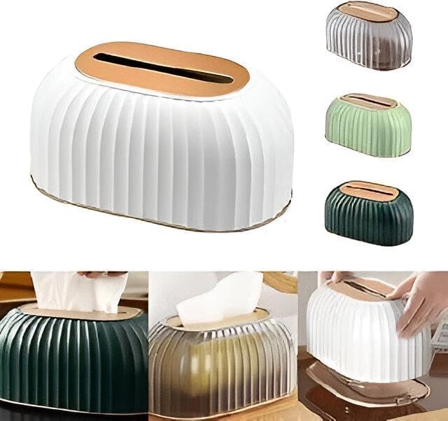 - علبة مناديل أنيقة ومتينة: مصنوعة من مواد البولي إيثيلين تيرفثالات وايه بي اس القوية، تم تصميم هذا الصندوق ليدوم مع الحفاظ على مظهر أنيق ولامع. تضمن الزوايا المستديرة مظهرًا لا تشوبه شائبة دون المساس بالسلامة، مما يجعلها إضافة عملية وجذابة لأي غرفة في منزلك.